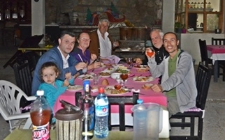 Belde merkezinde Abdurrahman Bey ile tanışıyoruz. Ve sohbet ediyoruz. Kendisi Çınaraltı Restaurant ve pansiyonun sahibi ve işletmecisi. Geceyi burada geçirmeye karar veriyorum. Bahçesiyle ,yemekleriyle, temizliğiyle ve samimi ortamıyla oldukça güzel bir yer ve fiyatları oldukça uygun. Abdurrahman Bilgiç Bey turizm adına bu konuda çok mücadele etmiş ve hatta bölgeyi tanıtan harita dahi bastırtmış. Odama yerleşip duşumu alıp kıyafetlerimi değiştirdikten sonra bahçede yorgunluk çayı içiyoruz. Akşam bahçede Abdurrahman Bey ve Cihan Hanım’ın şehir dışından gelen aileyle beraber mangal yakıp harika bir yemek yiyoruz. Cihan Hanımın torunu minik Sera ile oldukça güzel anlaşıyoruz. Tüm yorgunluğum Sera’yla dağılıyor benimde. Ve gecenin sonunda yol boyu aldığım parkur notlarını derledikten sonra. Yol boyu ilk defa tulum yerine yatakta bir gece geçireceğim odama çekilip günü bitiriyorum.
