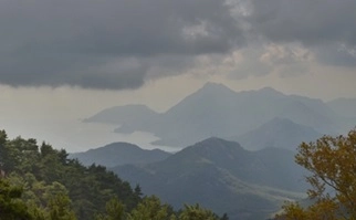 Yürüyüş gittikçe tırmanışa dönüşüyor. Hatta Likya Yolunun en dik tırmanışlarından biri diyebilirim. Su ihtiyacı her 100 mt.’de hissediliyor. Dinlene dinlene tırmanışım 4 saat kadar devam ediyor. Oldukça yüksek rakımlarda olduğumdan dolayı zaman zaman etrafı sis kaplıyor. Ağaçların dalları sis ve nemden yosun kaplamış neredeyse. Tahtalı dağının yanına kadar süren tırmanış sonrası ağaçların olmadığı düz bir ovaya ulaşıyorum. Dağın tepe noktası tamamen çorak tek bir ağaç bile yetişmemiş. Dileyen gezginler bu noktada dağın zirvesine çıkmak için alternatif etkinlik yapabilirler. Dağın zirvesinde dünyanın üçüncü en uzun mesafeli teleferiği mevcut. Buradan Phaselis antik kentine teleferikle inilebiliyor.